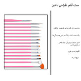 پک قلم طراحی ناخن شامل 15 قلم در انواع مدل های مورد نیاز برای طراحی حرفه ای را شامل می شود.این پک شامل 5 سایز قلم لاینر، 4 سایز قلم سر تخت، یک سایز قلم سرکج دو سایز قلم 3D ، دو قلم بادبزنی و یک سایز قلم داتینگ است. وجود چند سایز مختلف در هر مدل، این پک را برای طراحی های حرفه ای مناسب می سازد. قلم لاینر، برای کشیدن خطوط صاف در طراحی مناسب است. قلم بادبزنی، برای استفاده از پک دیزاین پودری و sugarمناسب است. با استفاده از قلم بادبزنی میتوان روی لاک نیمه خشک شده ناخن، طرح ابر و باد ایجاد کرد. قلم سر تخت و سرکج، برای طراحی های ظریف مانند گل، چهره و ... روی ناخن مناسب است.قلم 3D، برای استفاده در کاشت ناخن مناسب ترین قلم است.قلم داتینگ، برای ایجاد نقطه و یا کشیدن گل و انواع طرح بوسیله نقطه گذاری مناسب است. دقت کنید بعد از استفاده از تمام قلم مو ها، آنها را بلافاصله تمیز نمایید. ماندن مواد طراحی روی قلم به مرور باعث ریزش موهای قلم مو خواهد شد.