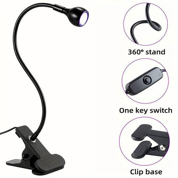 دستگاه ال ای دی تک انکشتی گیره دار مخصوص کاشت ناخن با تیپ ژل ( ژلیکس ) است، از آنجا که در کاشت ناخن با تیپ ژل باید هر انگشت جداگانه کاشته و مقابل دستگاه ال ای دی قرار گیرد این محصول دارای یک عدد ال ای دی است.