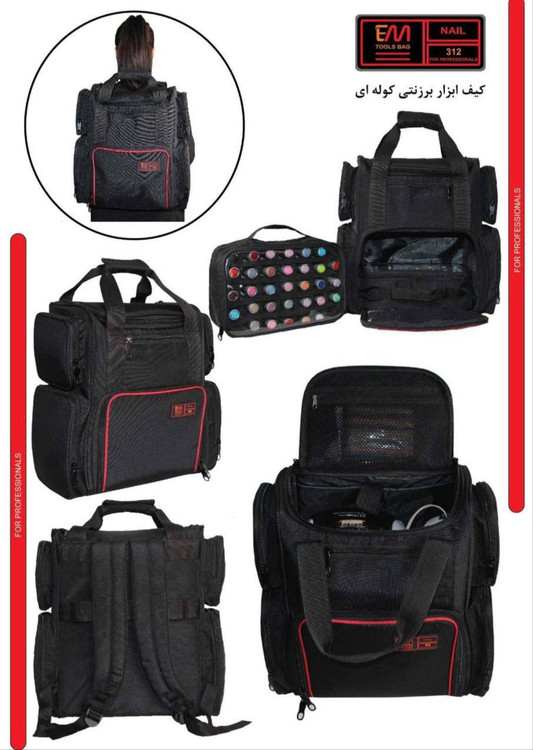 کیف ابزار آرایشگاهی برزنتی کوله ای مقسم دار ای ام E.M
